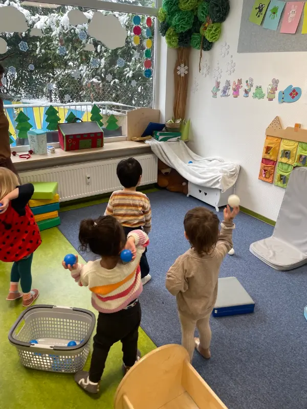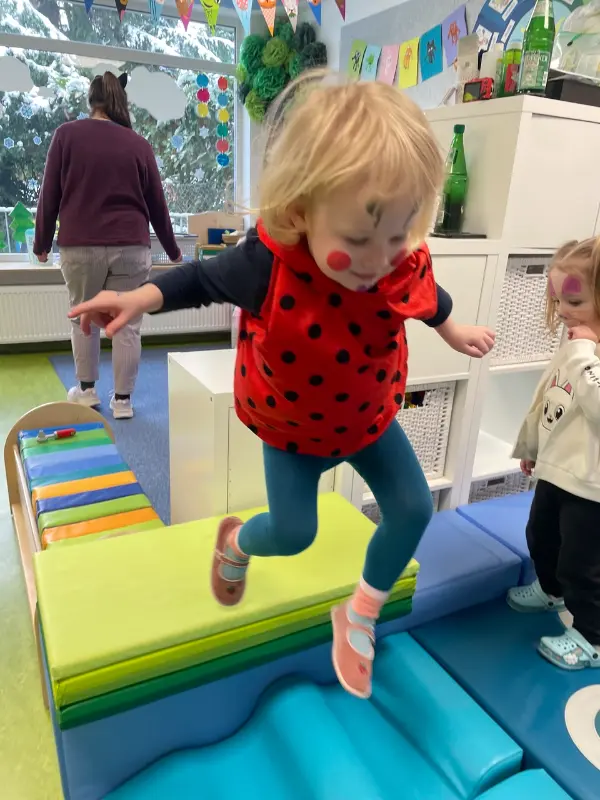 Gemeinsam haben wir Fingerspiele gespielt, gesungen und ausgelassen getanzt. Ein besonderes Highlight war unser Theaterstück zum Thema Waldtiere, das die Kinder mit großer Begeisterung angeschaut haben.