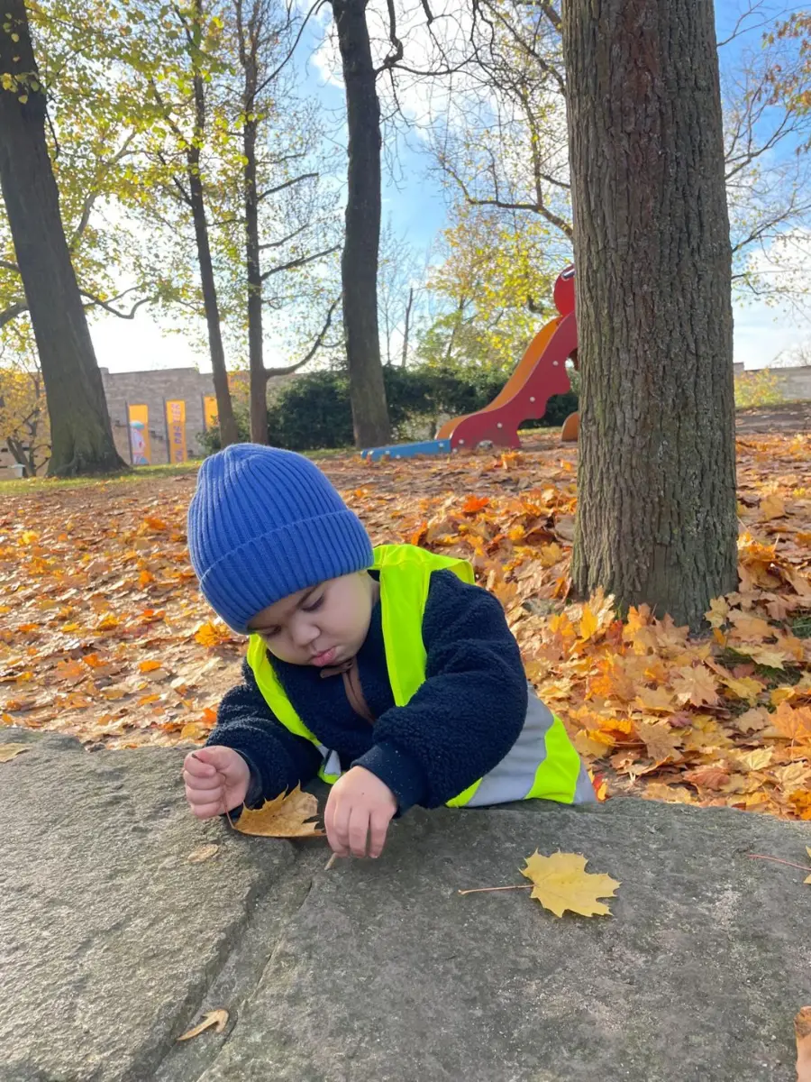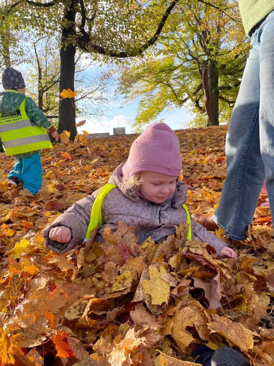 Warm eingepackt machten wir uns auf den Weg. Die Kinder hatten viel Freude daran, die bunten Blätter auf dem Boden zu entdecken. Die Natur zeigte sich von ihrer schönsten Seite – in leuchtendem Gelb, Rot und Orange.