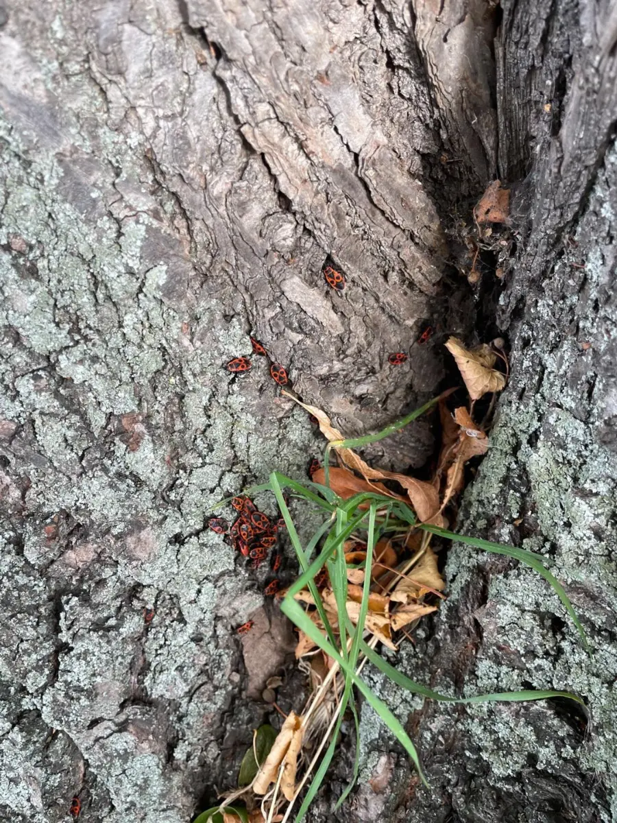 Besonders spannend war es für die Kinder, die verschiedenen Herbstgeräusche wahrzunehmen: raschelndes Laub, zwitschernde Vögel und das Knacken von Zweigen unter den Füßen. Immer wieder blieben wir stehen, um kleine Naturschätze zu bestaunen – kleine rote Käfer (Feuerwanzen) oder ein kunstvoll gebautes Spinnennetz sorgten für Staunen. Danach haben wir gemeinsam bunte Blätter gesammelt und uns ins Laub gelegt.